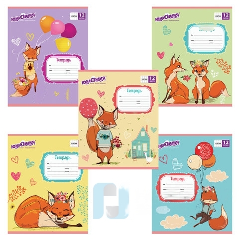 Тетрадь 12 л. ЮНЛАНДИЯ клетка, обложка картон, "ЛИСЯТА", 104913