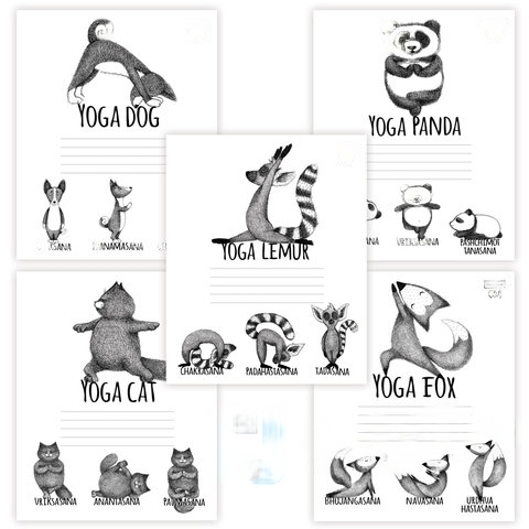 Тетрадь 24 л., HATBER, клетка, обложка картон, "Animals Yoga" (5 видов), 24Т5В1