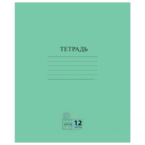 Тетрадь ЗЕЛЁНАЯ обложка 12 л., клетка с полями, офсет №2 ЭКОНОМ, "ПИФАГОР", 104984