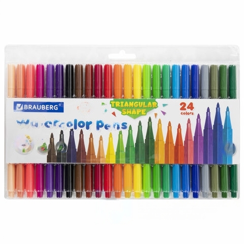 Фломастеры трехгранные 24 цвета, вентилируемый колпачок, BRAUBERG "PREMIUM", ПВХ-упаковка, 152194