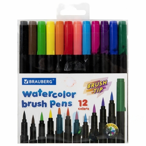 Фломастеры с наконечником-кистью 12 цветов, вентилируемый колпачок, BRAUBERG "PREMIUM", 152195