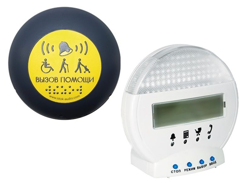 Контрастное оформление делает кнопку заметной. Обширная площадь активатора подходит для нажатия костылем, протезом, локтем, тыльной стороной ладони и т.д. Кнопка вызова передает радиосигналы, чтобы вызвать помощника для посетителей.