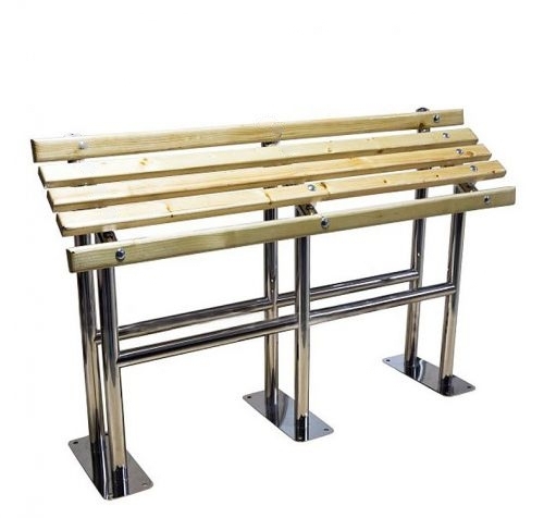 Скамейка состоит из корпуса с шестью опорами и деревянного настила. Предназначена для людей, имеющих заболевания и повреждения ног, пользующихся протезами и испытывающих затруднения при подъеме с обычной скамьи.