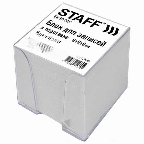 Блок для записей STAFF в подставке прозрачной, куб 9х9х9 см, белый, белизна 70-80%, 129202