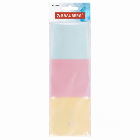 Блок самоклеящийся (стикеры) BRAUBERG, ПАСТЕЛЬНЫЙ, 76х76 мм, 3 цвета х 50 листов, 124808
