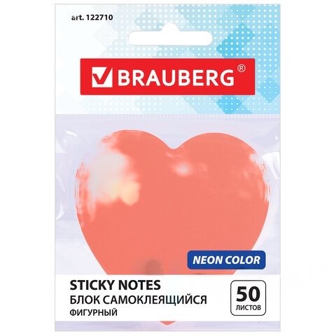 Блок самоклеящийся (стикеры), фигурный BRAUBERG, НЕОНОВЫЙ "Сердце", 50 листов, розовый, европодвес, 122710