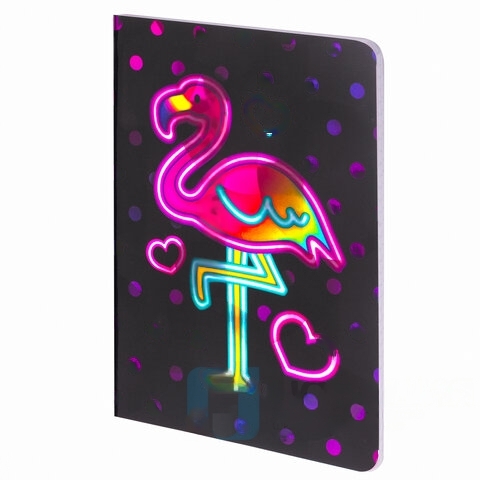 Блокнот МАЛЫЙ ФОРМАТ (103х148 мм) А6, 32 л., сшивка, голограмма, клетка, ЮНЛАНДИЯ, Фламинго, 662701