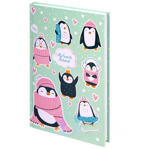Блокнот А5 (134х206 мм), 80 л., твёрдый, клетка, BRAUBERG KIDS, "Пингвинчики", 114420