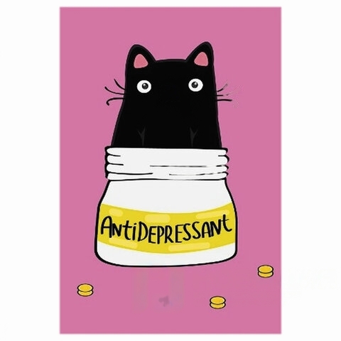 Блокнот с гелевой обложкой МАЛЫЙ ФОРМАТ (110х145 мм) А6, 56 л., скоба, CENTRUM, Кот-Антидепрессант, 84235