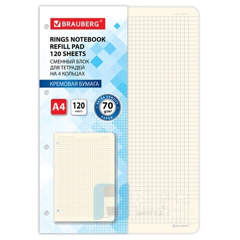 Сменный блок к тетради на кольцах БОЛЬШОЙ ФОРМАТ А4 120 л., BRAUBERG, ПОВЫШЕННОЙ ПЛОТНОСТИ, кремовый, 404517