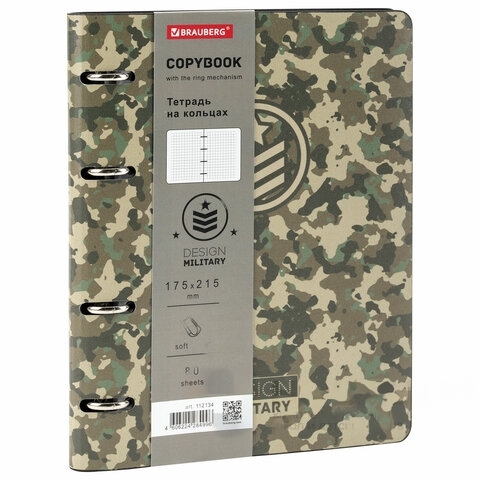 Тетрадь на кольцах А5 (180х220 мм), 80 л., под кожу, BRAUBERG VISTA, "Military", 112134