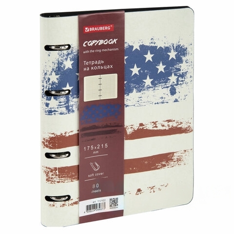 Тетрадь на кольцах А5 (180х220 мм), 80 л., под кожу, BRAUBERG VISTA, "USA", 112122