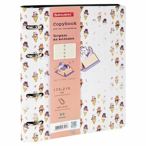 Тетрадь на кольцах А5 (180х220 мм), 80 л., под кожу, BRAUBERG VISTA, "Meow", 112127