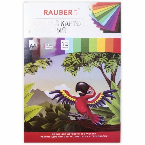Картон цветной А4 МЕЛОВАННЫЙ (глянцевый), 12 листов 12 цветов, в папке, BRAUBERG, 200х290 мм, "Килиманджаро", 129917