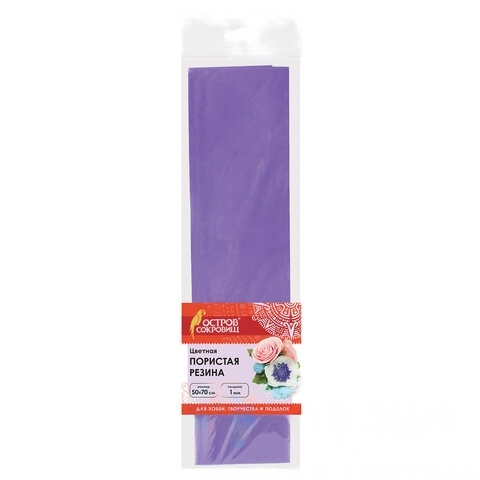 Пористая резина (фоамиран) для творчества, СИРЕНЕВАЯ, 50х70 см, 1 мм, ОСТРОВ СОКРОВИЩ, 661688