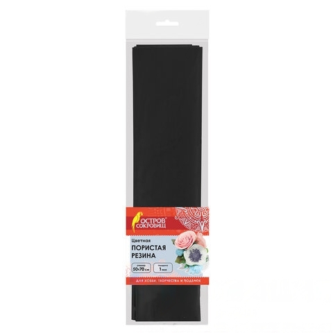 Пористая резина (фоамиран) для творчества, ЧЕРНАЯ, 50х70 см, 1 мм, ОСТРОВ СОКРОВИЩ, 661691