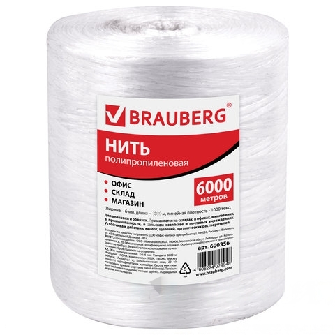 Нить полипропиленовая, длина 6000 м, ширина 6 мм, линейная плотность 1000 текс, BRAUBERG, 600356