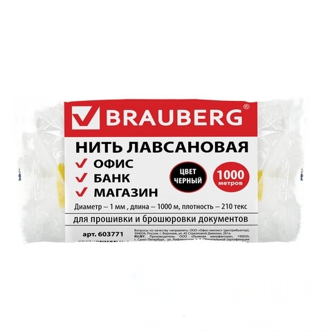 Нить лавсановая для прошивки документов, ЧЕРНАЯ, диаметр 1 мм, длина 1000 м, ЛШ 210ч, BRAUBERG, 603771