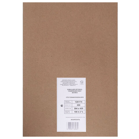 Ватман, формат А2 (594х420 мм), 1 лист, плотность 200 г/м2, ГОЗНАК Краснокамск