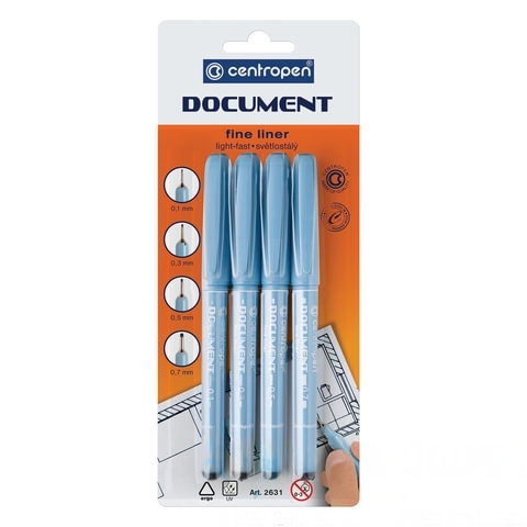 Ручки капиллярные (линеры) ЧЕРНЫЕ CENTROPEN "Document" НАБОР 4 шт., линия 0,1/0,3/0,5/0,7 мм, 2631/4, 2 2631 0404
