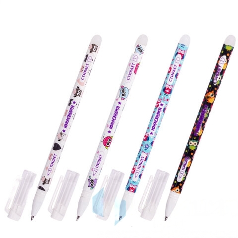 Ручка стираемая гелевая ЮНЛАНДИЯ "Совята", СИНЯЯ, корпус ассорти, узел 0,5 мм, линия письма 0,35 мм, 143658