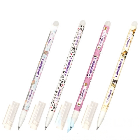 Ручка стираемая гелевая ЮНЛАНДИЯ "Котята", СИНЯЯ, корпус ассорти, узел 0,5 мм, линия письма 0,35 мм, 143659