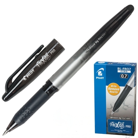 Ручка стираемая гелевая с грипом PILOT "Frixion Pro", ЧЕРНАЯ, корпус с печатью, линия письма 0,35 мм, BL-FRO-7