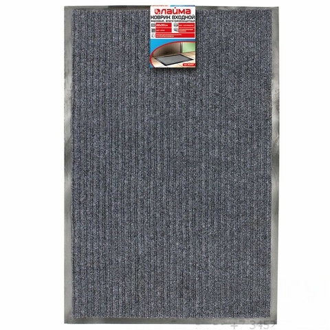 Коврик входной ворсовый влаго-грязезащитный LAIMA, 60х90 см, ребристый, толщина 7 мм, серый, 602867