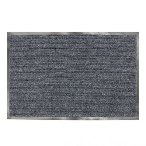 Коврик входной ворсовый влаго-грязезащитный LAIMA, 90х120 см, ребристый, толщина 7 мм, серый, 602872