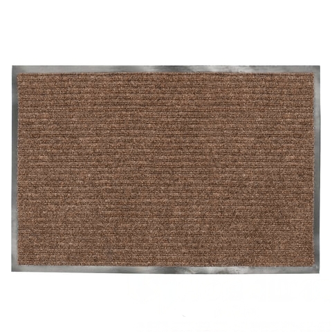 Коврик входной ворсовый влаго-грязезащитный LAIMA, 90х120 см, ребристый, толщина 7 мм, коричневый, 602873