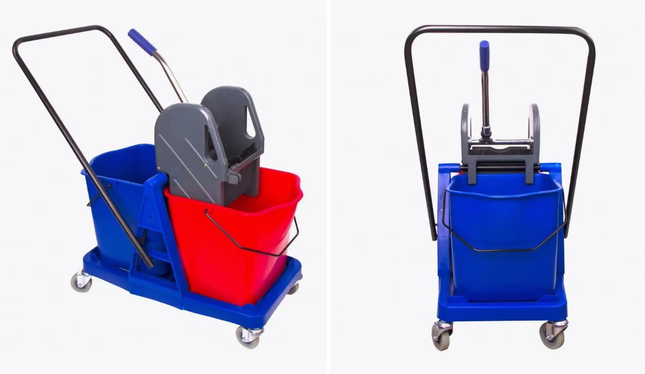 Тележка уборочная BRABIX, 2 съемных ведра 23 л, механический отжим, пластиковый каркас, 606659