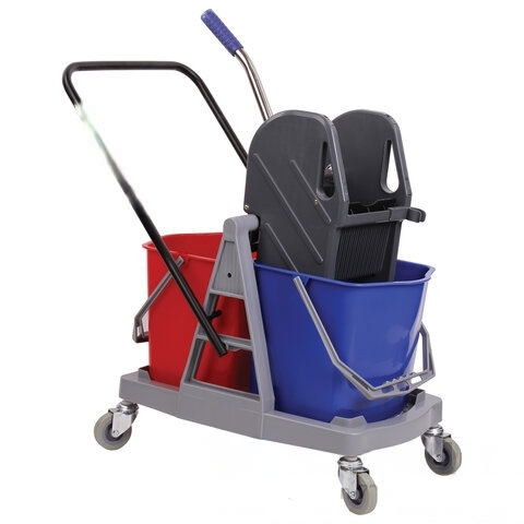 Тележка уборочная BRABIX, 2 съемных ведра 17 л, механический отжим, пластиковый каркас, 606660