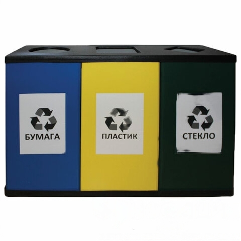 Урна металлическая для раздельного сбора мусора, 700х1065х360 мм, 3 бака по 80 литров, оцинкованная сталь/прочный термостойкий пластик, 450