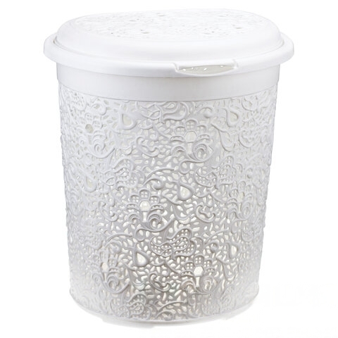 Корзина 50 л, с крышкой, для мусора/белья, овальная, пластик, 53х43х34 см, белая, КРУЖЕВО, IDEA, М 2601, М 2603