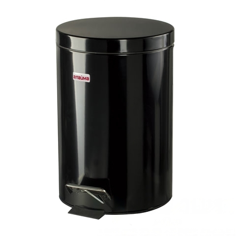 Ведро-контейнер для мусора (урна) с педалью LAIMA "Classic", 12 л, черное, глянцевое, металл, со съемным внутренним ведром, 602850