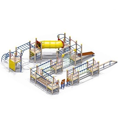 В составе комплекса: 9 башен, тоннельный переход, рукоход, шведские стенки, альпинистские стенки с прорезями, наклонная лиана, вертикальные лестницы для лазания, гимнастическая скамья, бум-бревно, подвесной мост, подвесной бум, переход в виде переправы.
