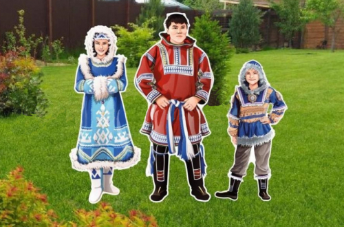 Композиция уличных фигур Семья хантов