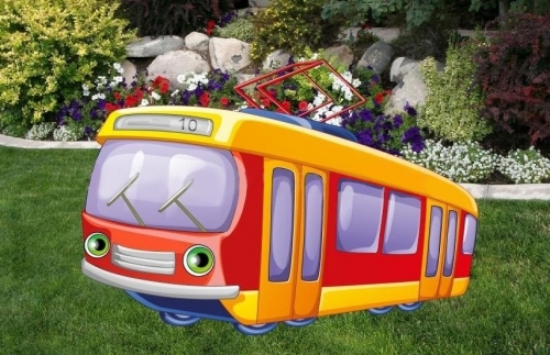 На фигуру нанесен полноцветный рисунок трамвая. Поверхность покрыта защитной пленкой. Устанавливается в грунт при помощи металлических стоек и крепежа (входят в комплект).