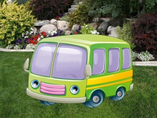 На фигуру нанесен полноцветный рисунок автобуса и покрыт защитной пленкой. Устанавливается в грунт при помощи металлических стоек и крепежа (входят в комплект).