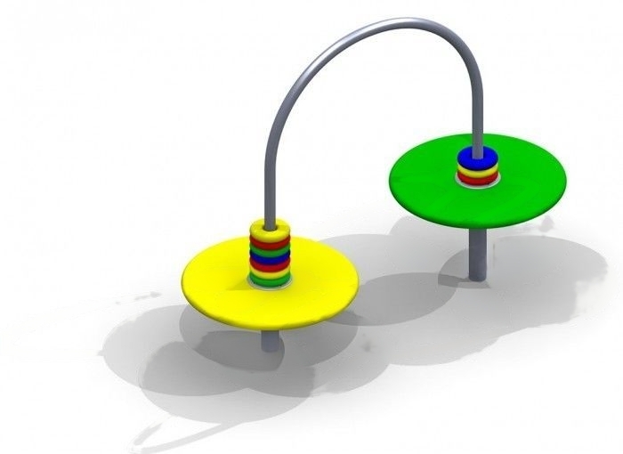 Конструкция представлена разновысокими столами, дугой на стойках и “баранками” из пластика или дерева.
