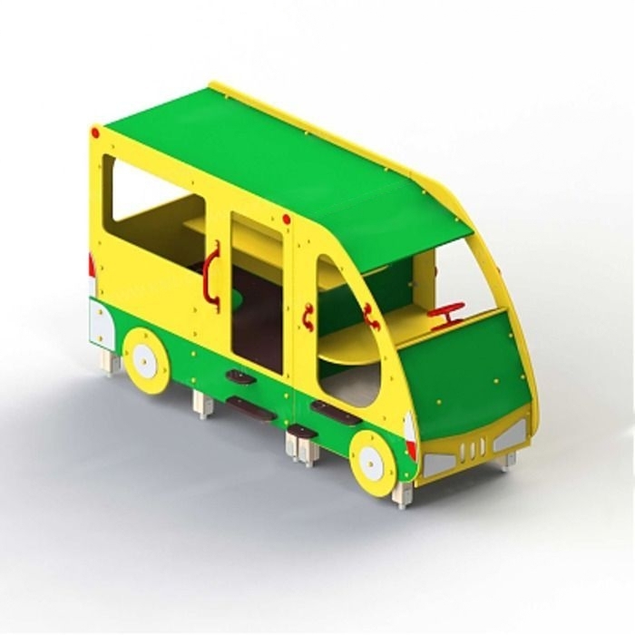 Сооружение представляет собой имитацию кузова и кабины автобуса. Выделяются декоративные детали: руль, фары, колеса, решетка радиатора, педаль и рычаг передач. На боковых и задних стенках предусмотрены окошки. В обеих башнях есть вход. Внутрь можно подняться по ступеням.
