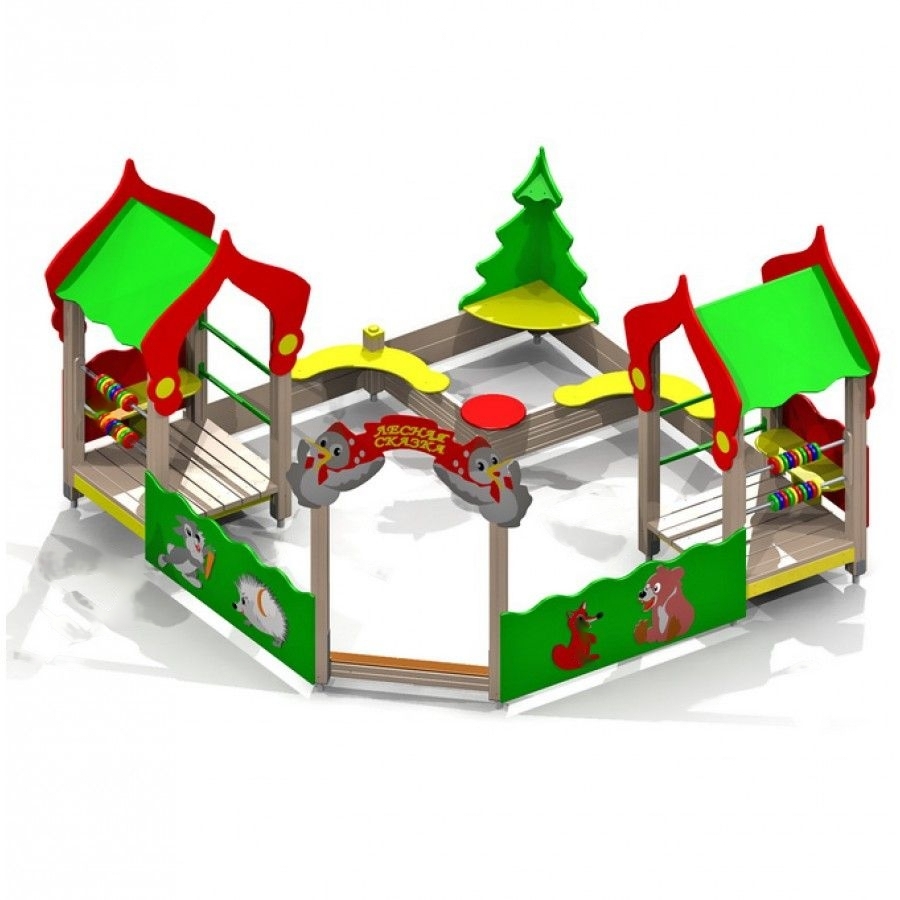 Детский игровой комплекс оформлен в сказочном стиле; размещается на территории ДОУ.