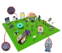 Макеты помогают узнать об устройстве Вселенной и профессии космонавта. Пособие содержит рекомендации по работе с приборами. Площадка подготовлена к смене погодных условий и частой эксплуатации. Поверхности гипоаллергенны, противостоят физическим и химическим воздействиям.