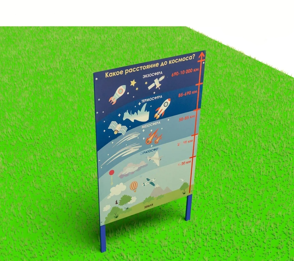 Стенд с изображением слоев атмосферы подходит для космической площадки. Задействуется во время развивающих игр, бесед на тему астрономии. Ребенок пополнит словарный запас, узнает новое об окружающем мире, укрепит память.