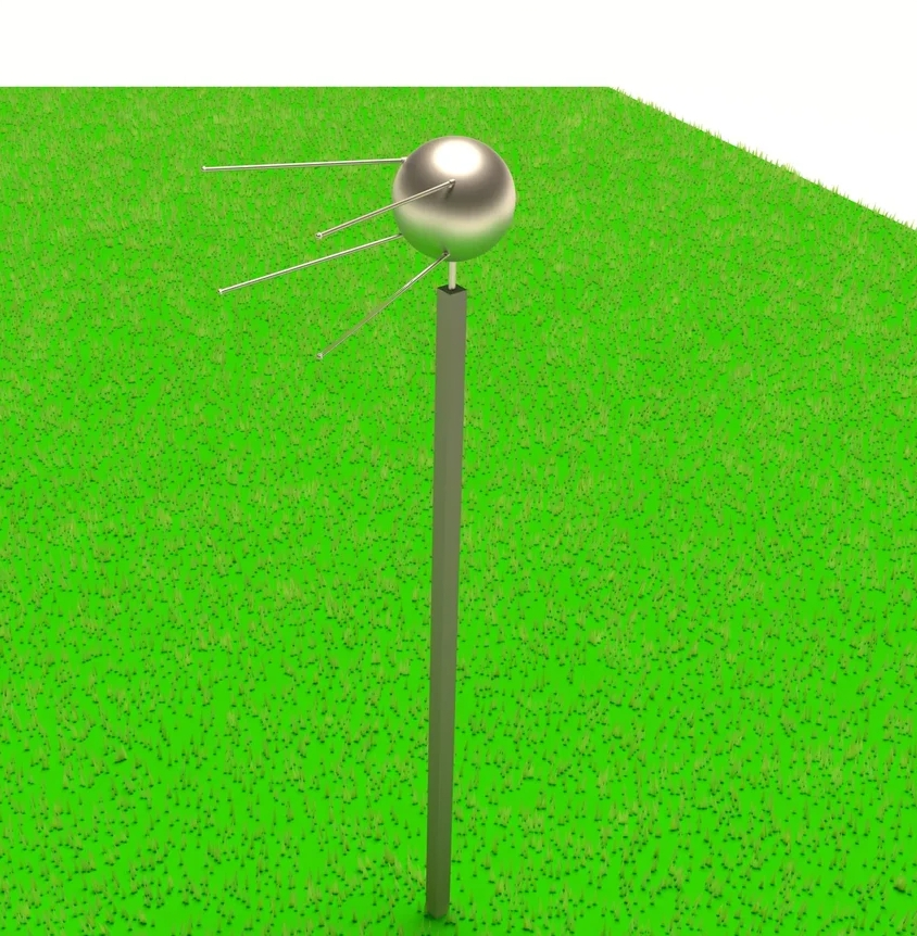 Элемент детской космической площадки применяется для наглядного рассказа об астрономии. Макет искусственного спутника Земли закреплен на стойке.