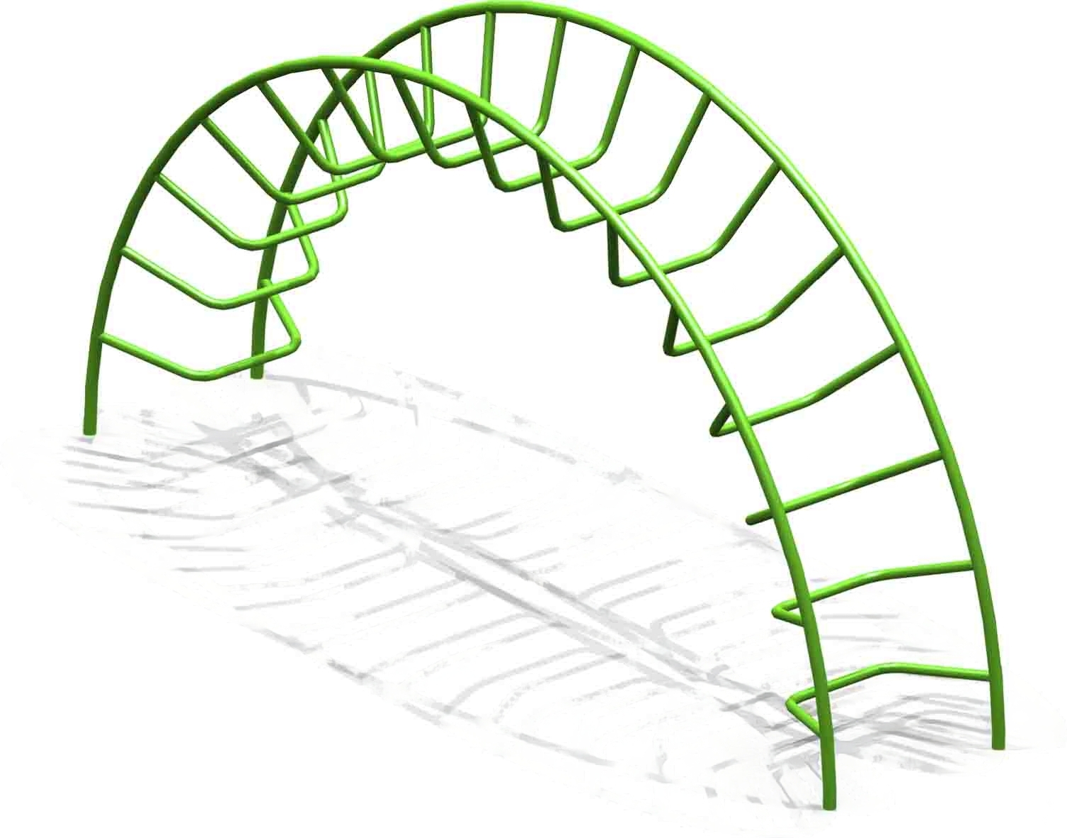 Спорткомплекс подходит для лазания на свежем воздухе. Это дугообразная конструкция с вогнутыми перекладинами между стойками (d 42 мм). Сварные швы гладкие. По ступеням можно ходить, держась за боковые трубы. Также установка позволяет висеть, выполняя упражнения на позвоночник и растяжку.