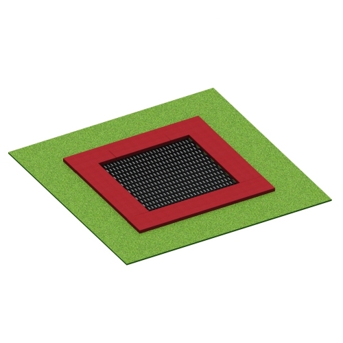 Корпус представляет собой сборную конструкцию, состоящую из четырех бортов, соединенных между собой болтовым соединением. Прыжковое полотно изготовлено из массива ПНД-элементов, закрепленных на нержавеющих тросах. Батут устанавливается на уровне земли, что обеспечивает безопасность.