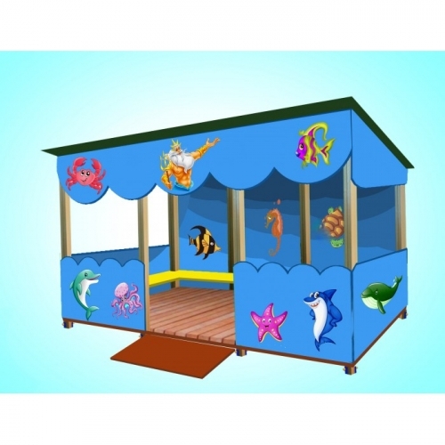 Изделие представляет собой сборную конструкцию. Пол выполнен из половой шпунтованной сухой доски, пропитанной антисептиком от влаги и гниения. Крыша из профнастила и фанерные стены защищают детей и взрослых от влияния различных погодных условий.
