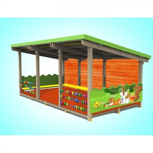Беседка помогает организовать игры на свежем воздухе в независимости от погодных условий. Дети могут поиграть со счетами или отдохнуть на скамейке.