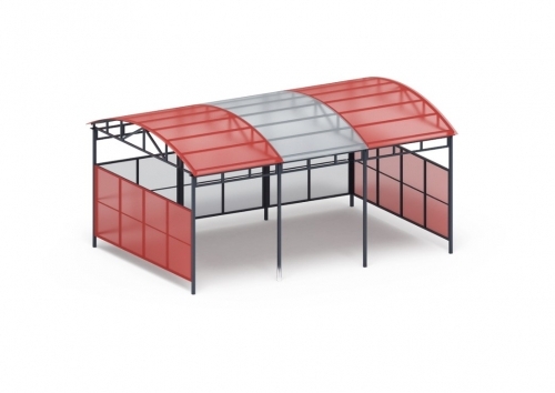 Конструкция навеса состоит из крыши, ограждений, каркаса и вертикальных опор для устойчивого размещения. Напольное покрытие не предусмотрено.